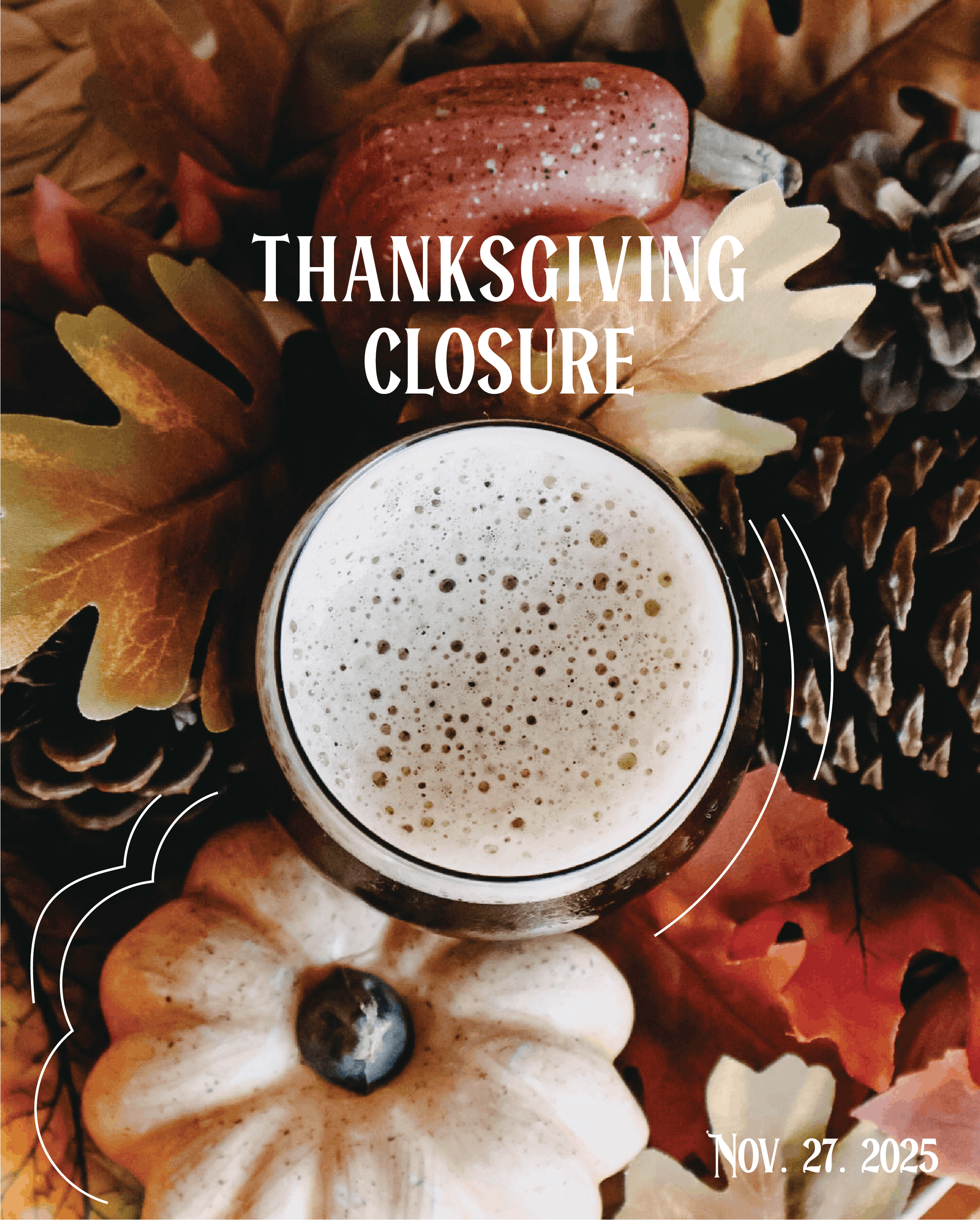Happy Thanksgiving from all of us at Talyard! We’ll be closed on Thanksgiving Day so our team can enjoy good food, strong pours, and time with loved ones. We’ll be back Friday—ready to pour you a post-pie pint.